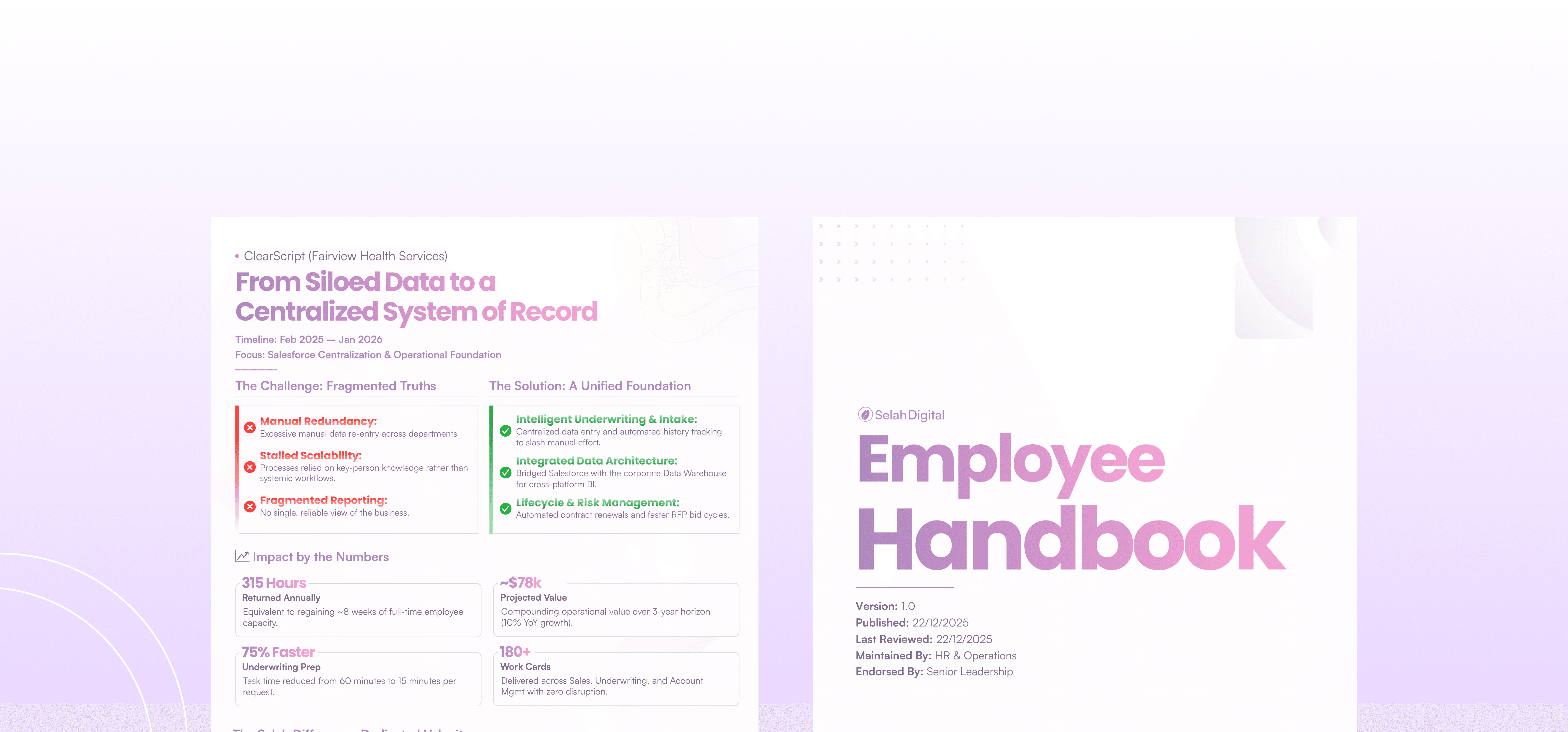 As Selah Digital continued to grow, the brand lacked a unified visual system across internal documents, marketing materials, and communication assets. Inconsistent design patterns and fragmented visuals made it difficult to maintain a strong, recognizable brand presence internally and externally.